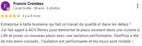 Créée en 2011 par Geoffrey VERIN, plaquiste enduiseur diplômé du centre de formation des Compagnons du Devoir à Villeneuve d'Ascq, AGV Rénov met son expertise artisanale au service de vos projets de rénovation.