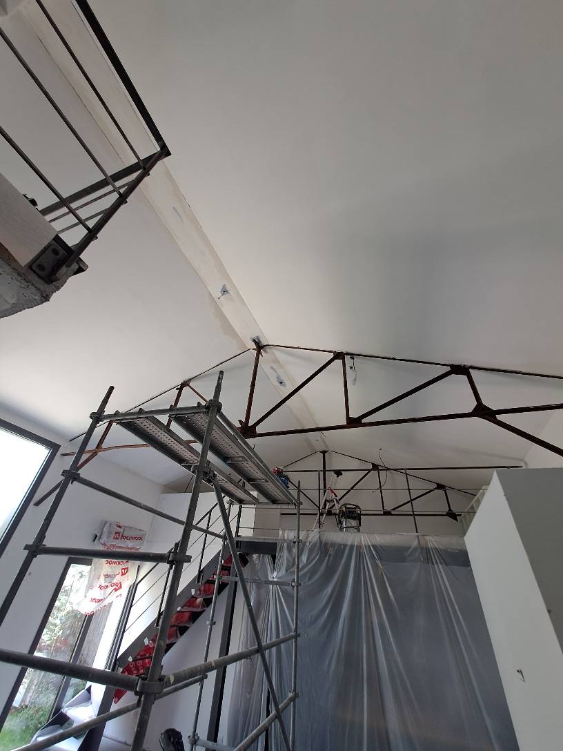 - Finition : après la pose, nous enduisons, ponçons et peignons le support selon la décoration souhaitée. Le choix d’une peinture mate contribue également à réduire les échos dans la pièce.